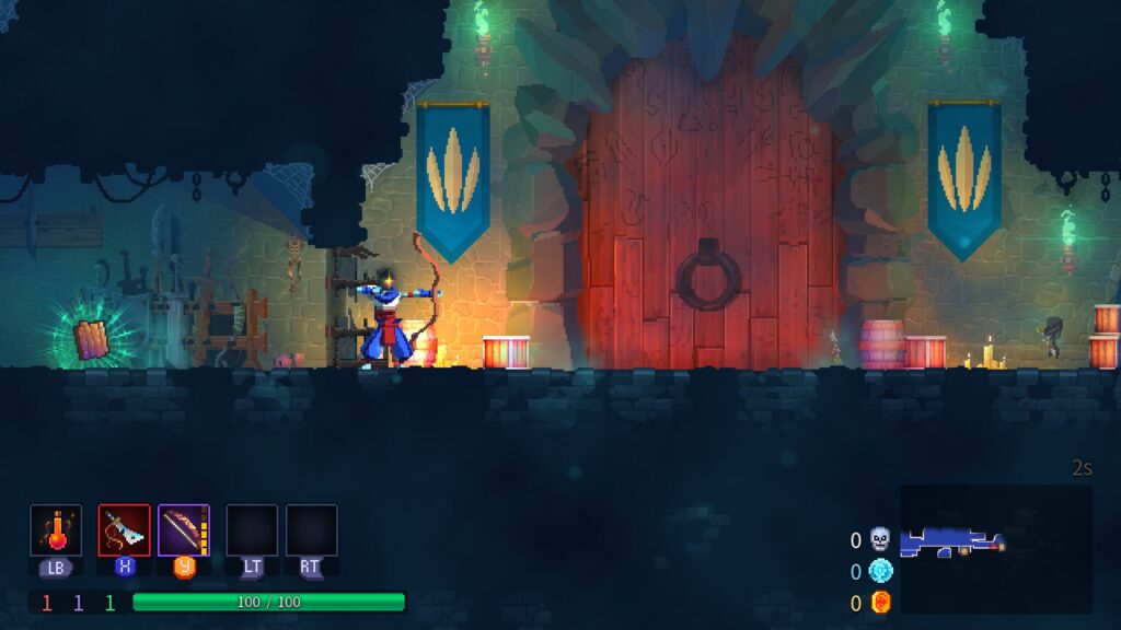 『Dead Cells』の戦闘はスピーディーで直感的です。プレイヤーは、多様な武器(剣、弓、魔法など)やスキルを使って、敵との戦闘を楽しむことができます。戦略的に武器やスキルを組み合わせることで、異なるプレイスタイルを体験できます。