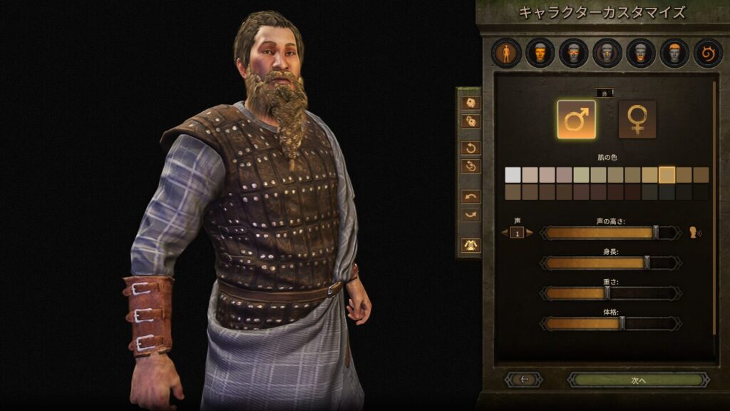 ゲーム開始時にプレイヤーは自分のキャラクターを作成します。外見、背景、スキルを設定し、プレイスタイルに合ったキャラクターを作りましょう。貴族出身や放浪者などの選択肢があり、それぞれのバックグラウンドがゲームプレイに影響を与えます。